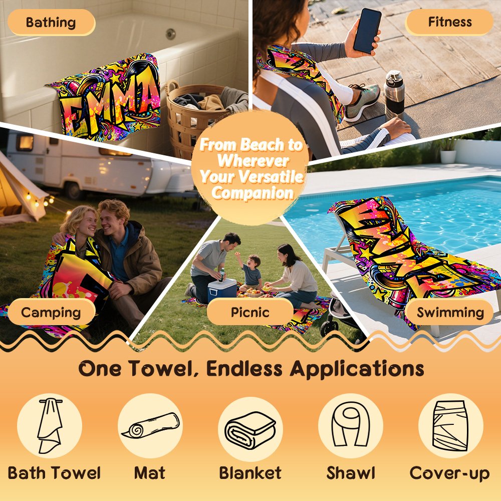 Dit strandlaken is een prachtig geschenk voor kinderen, vrienden, familie of iedereen die van strandvakanties houdt. Als verjaardagscadeau staat het voor een mooie toekomst en eindeloze vitaliteit. Geschonken voor een zomervakantie is het een attente en functionele verrassing voor onderweg. Als aandenken voor familie-uitjes of teamevenementen bevordert een gepersonaliseerd handdoekje met individuele identificatie een dieper gevoel van saamhorigheid en eenheid onder de ontvangers.