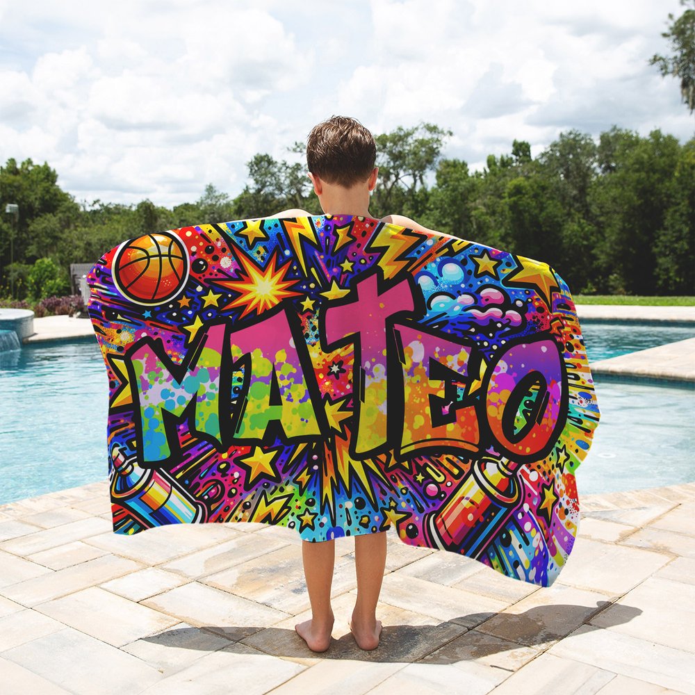 Dit strandlaken belichaamt de essentie van vrijgevochten graffitikunst en combineert op ingenieuze wijze de relaxte, ongeremde sfeer van de straatcultuur met de verleidelijke charme van de zee. Het patroon barst van de gedurfde, contrasterende tinten en abstracte lijnen, die doen denken aan een geïmproviseerde zomerkrabbel van een kunstenaar, die grenzeloze vitaliteit en dynamiek uitstraalt. De optie om de handdoek te personaliseren met je naam geeft deze levendige graffiti een persoonlijk tintje en verandert de handdoek van een gewoon accessoire in een uniek modestatement dat individualiteit uitstraalt.