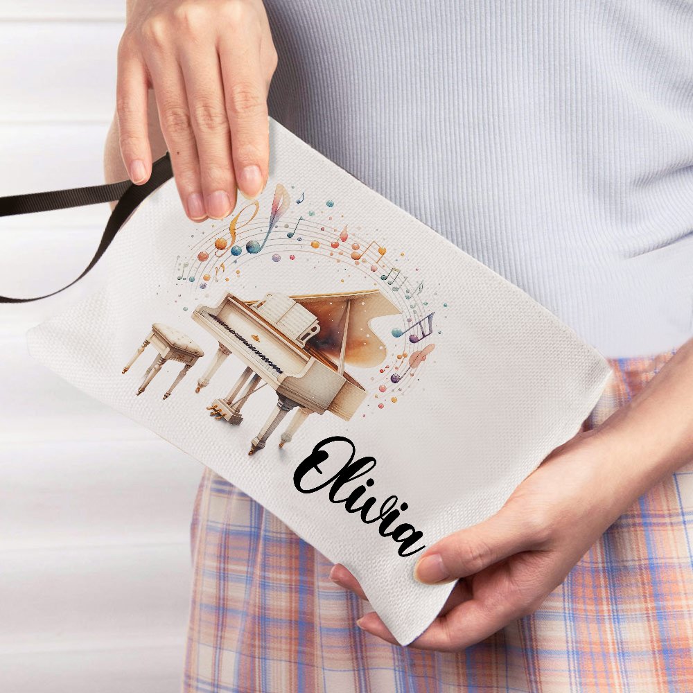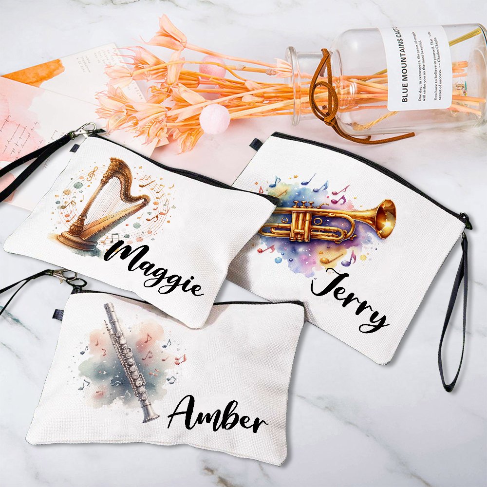 Het cosmeticatasje heeft een aquarel muziekinstrumentenpatroon dat je kunt kiezen uit 17 soorten. Je kunt er ook de naam van de ontvanger aan toevoegen, wat het tasje een persoonlijk tintje geeft en echt uniek maakt.
