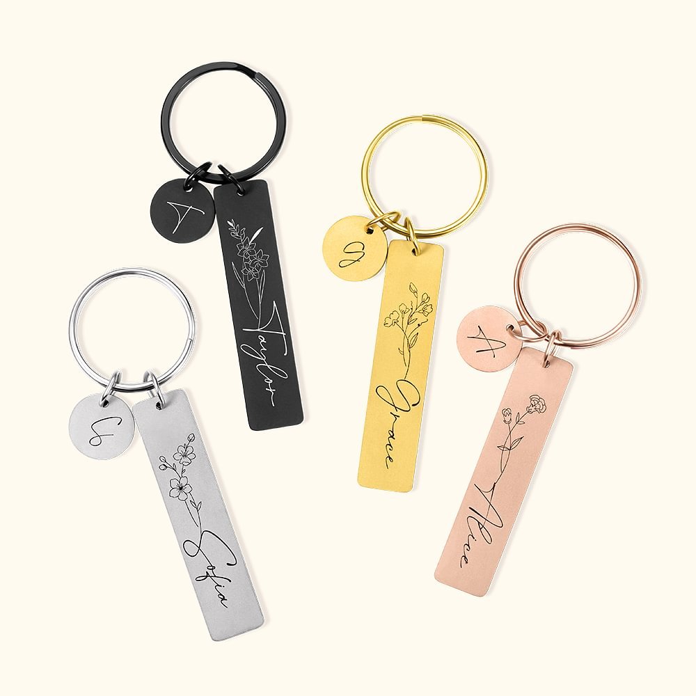 De klassieke verticale balk en het bloemmotief maken deze sleutelhanger zeer charmant, die moeiteloos bij dagelijks gebruik kan worden gedragen en aan portemonnees, handtassen en telefoonhoesjes kan worden gehangen om een persoonlijk tintje te geven.