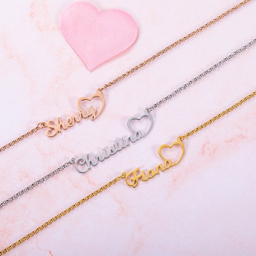 Elke ketting heeft een delicate en elegante ketting in drie prachtige afwerkingen - rosé, zilver en goud. Maar wat de ketting echt uniek maakt, is de aanpasbare naamhanger. De hanger is gecombineerd met een charmant liefdeshart en voegt een vleugje romantiek en sentimentaliteit toe. Of het nu jouw naam is, de naam van je geliefde of een speciaal woord dat betekenis voor je heeft, het kan prachtig op de hanger worden gegraveerd. Het lettertype van de naam is strak en stijlvol en past perfect bij de minimalistische esthetiek van de ketting.