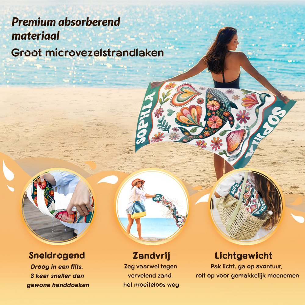 Het is een ideaal cadeau voor kinderen, kleinkinderen of vrienden die van het strand houden – perfect voor verjaardagen, zomervakanties of gewoon zomaar. De gepersonaliseerde naam en het speelse zeedierontwerp laten zien dat er aandacht is besteed aan het cadeau, waardoor een praktisch strandlaken verandert in een warm en persoonlijk aandenken dat de zomer tot leven brengt.