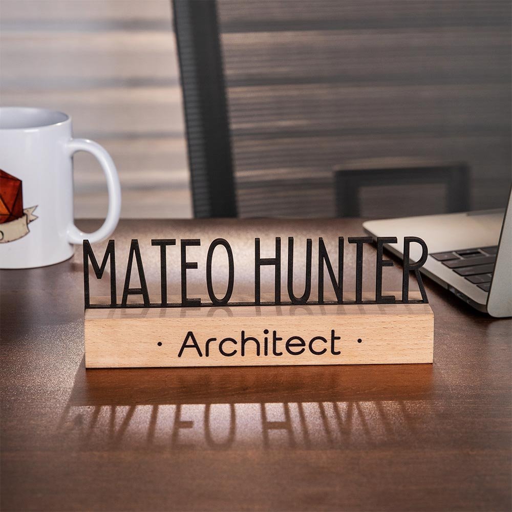 Dit gepersonaliseerde naamplaatje kan een geweldige decoratie zijn voor je bureau waardoor je kantoor er eenvoudiger en stijlvoller uitziet. Het is ook een duidelijk teken voor andere mensen om je naam en je unieke persoonlijkheid te zien.