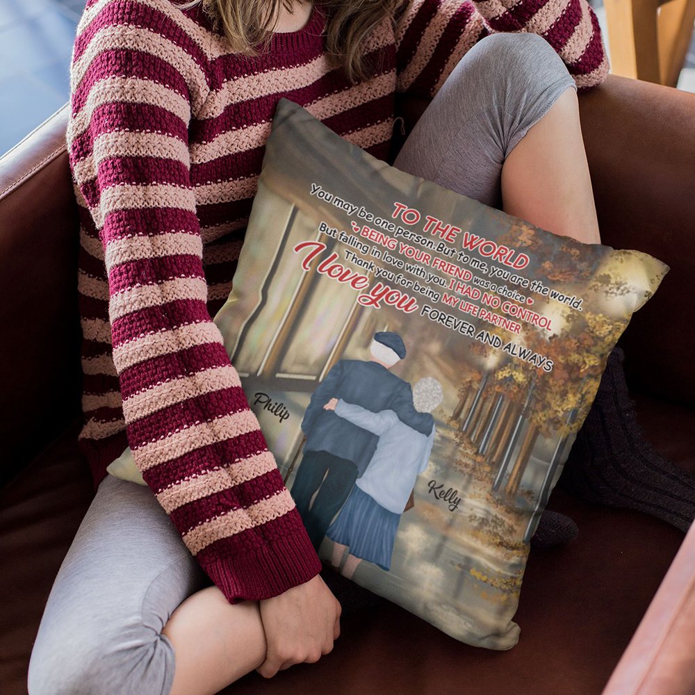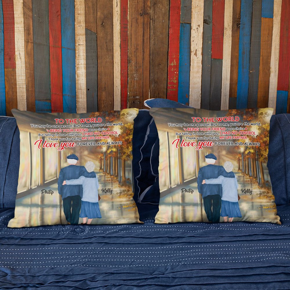 Gepersonaliseerd Oud Echtpaar Begeleidt Elkaar Vallen Bladeren Werpkussenhoes Valentijnsdag Home Decoration