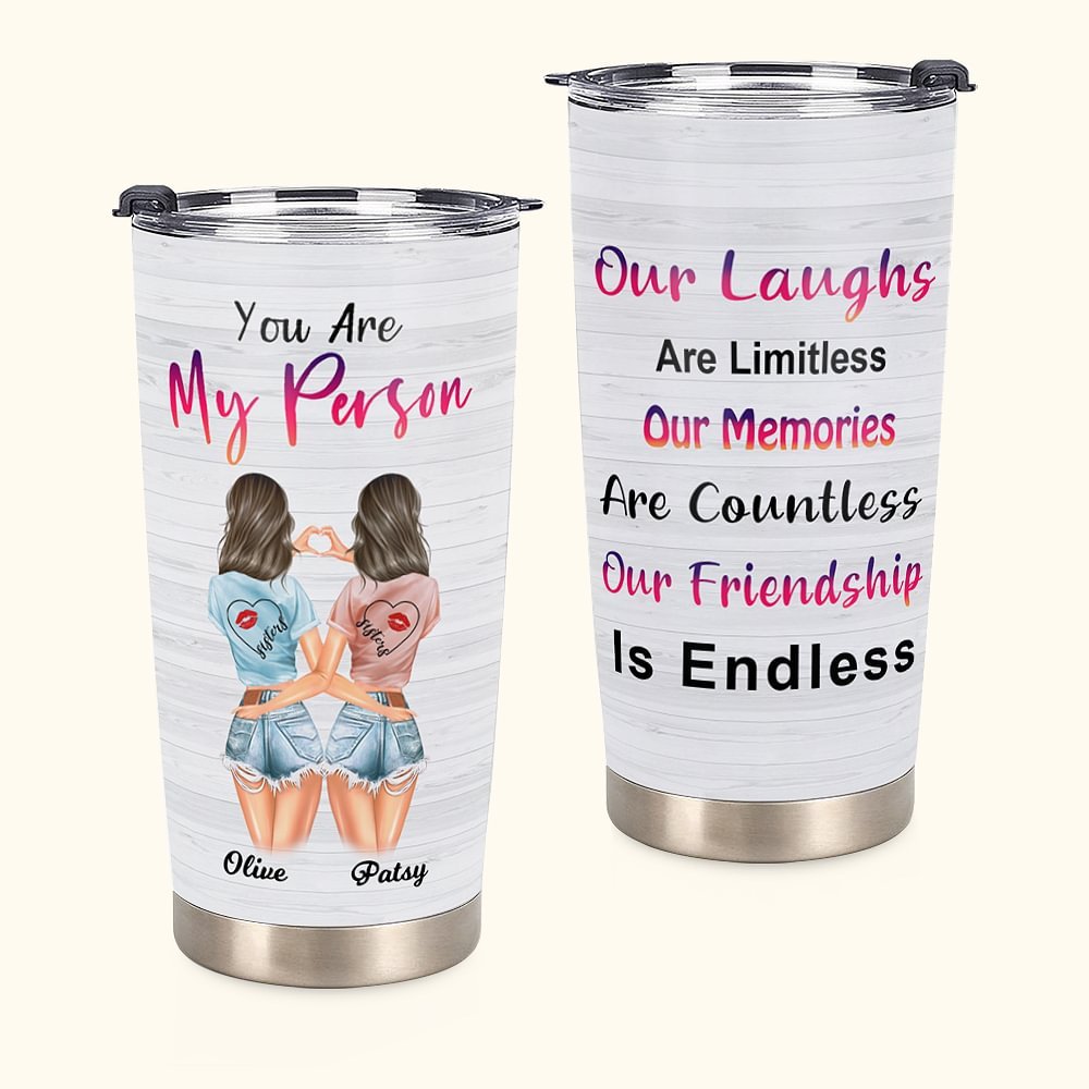 Gepersonaliseerde Bestie Quote Onze Lachen Zijn Grenzeloos Onze Herinneringen Zijn Ontelbaar 20oz Tumbler Verjaardag voor Warme en Koude Dranken
