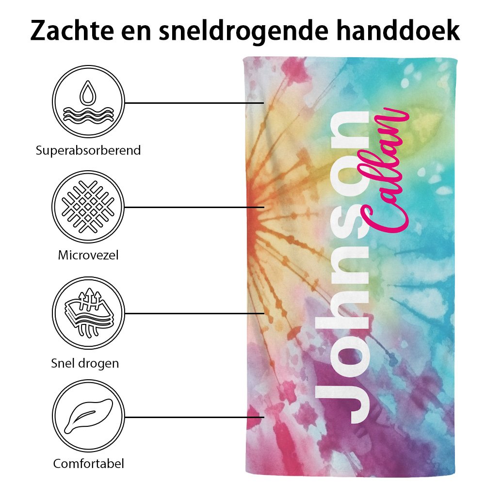 Verras uw dierbaren met een praktisch en persoonlijk verjaardagscadeau waarvan ze kunnen genieten tijdens hun strandavonturen. Dit tie-dye strandlaken combineert functionaliteit, charme en een persoonlijk ontwerp, waardoor het een doordacht en onvergetelijk cadeau is voor familie en vrienden.