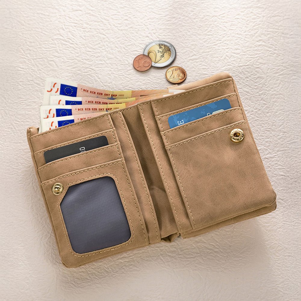 Deze portemonnee is gemaakt van eersteklas PU-leer en biedt een balans tussen zachtheid, duurzaamheid en een strakke stijl. Het materiaal is licht en toch stevig, het is bestand tegen slijtage en dagelijks gebruik, terwijl het soepel en luxe aanvoelt. Hij is gemakkelijk schoon te vegen en de hoogwaardige metalen ritsen glijden soepel voor probleemloze toegang tot de inhoud.