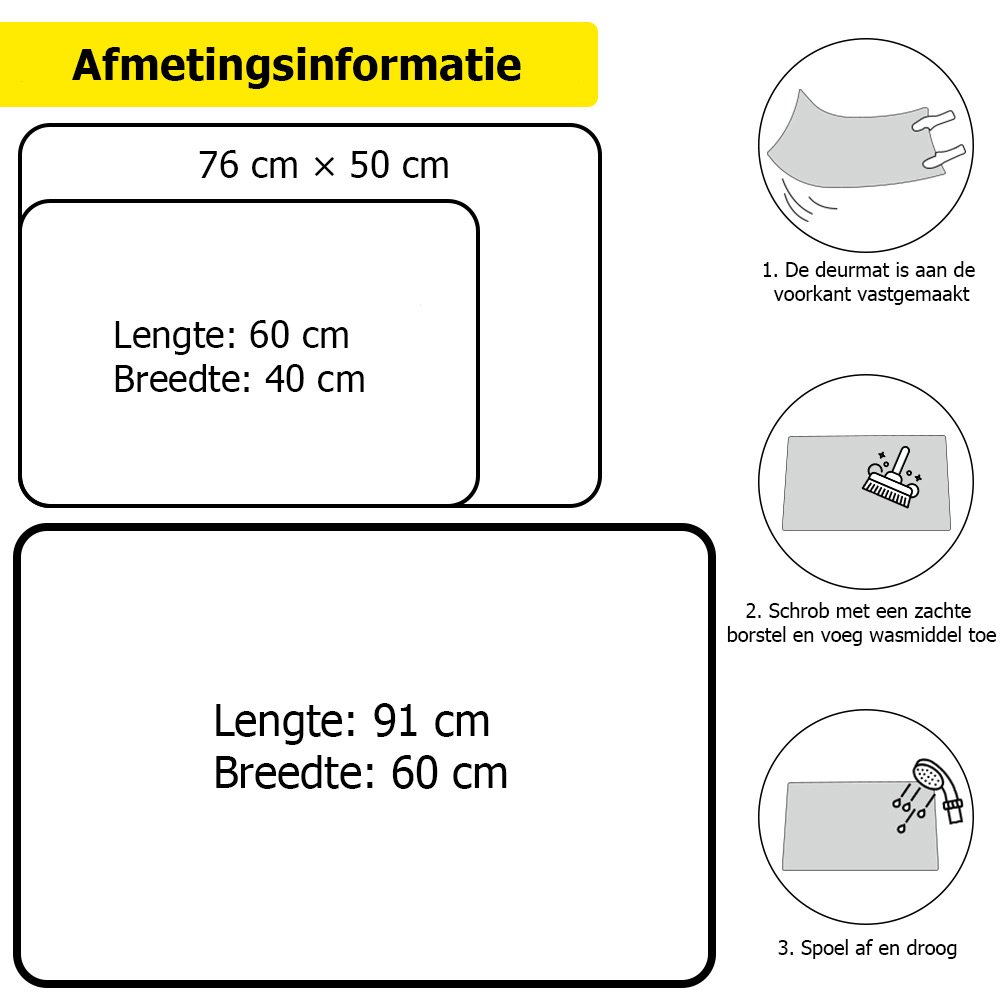 De deurmat is gemaakt van hoogwaardige polyestervezels. Hij absorbeert veel water, heeft een zachte textuur, is dik en duurzaam en glijdt niet gemakkelijk weg. En het schoonmaken is heel eenvoudig en handig: veeg de vlek gewoon weg met een vochtige doek of spons, of was hem in de wasmachine.