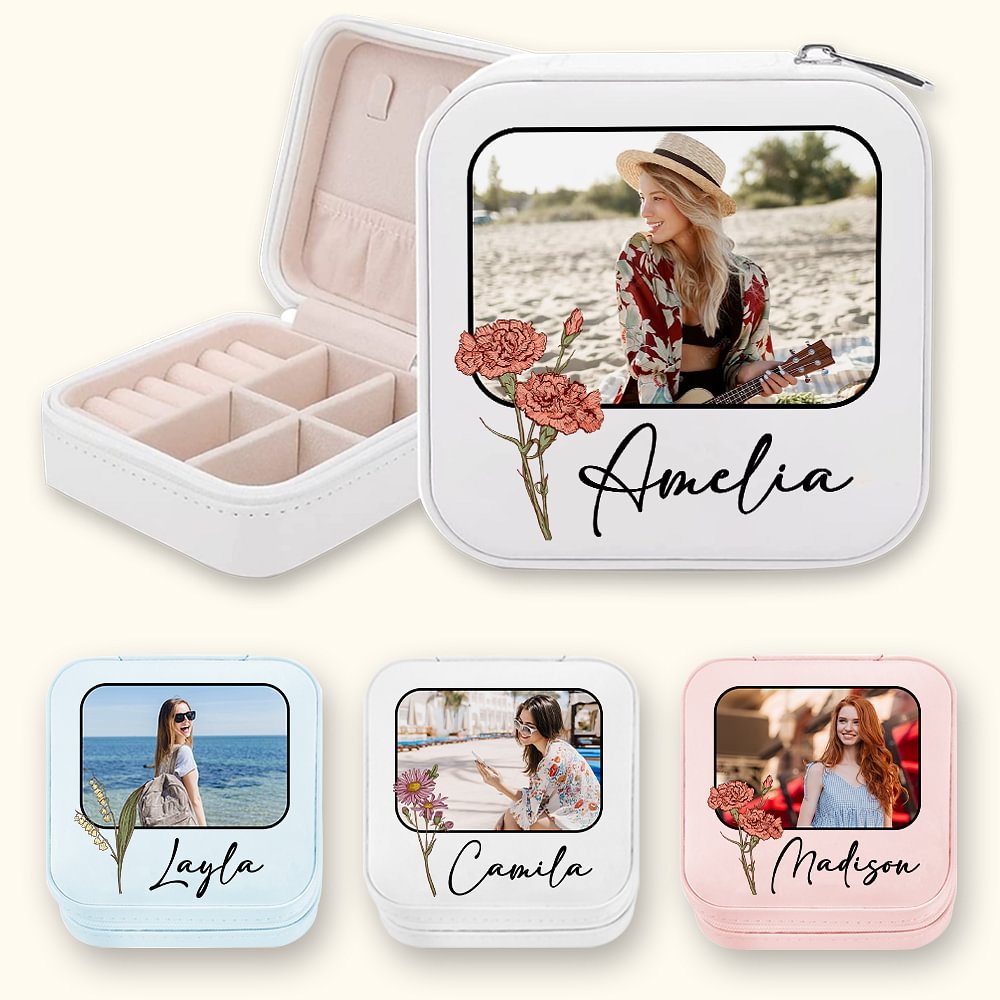 Je kunt de gepersonaliseerde aanpassingsfunctie op de juwelendoos maximaliseren door de verjaardagsbloem te selecteren, een foto te uploaden en een naam toe te voegen, waardoor je een unieke eigen juwelendoos creëert. Het is een geweldig cadeau voor moeders en bruidsmeisjes, dames op verjaardagen, bruiloften, bruidsmeisjesfeestjes of andere gelegenheden.