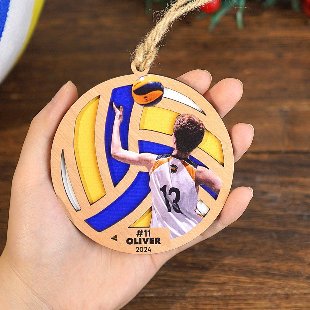 Are you looking for a present for a volleyball player? This personalized wood photo ornament is ideal. It can be customized with a photo and a name and a date. Capture the coolest or most emotional outbursts from a game or practice on this product for memories to last a lifetime.