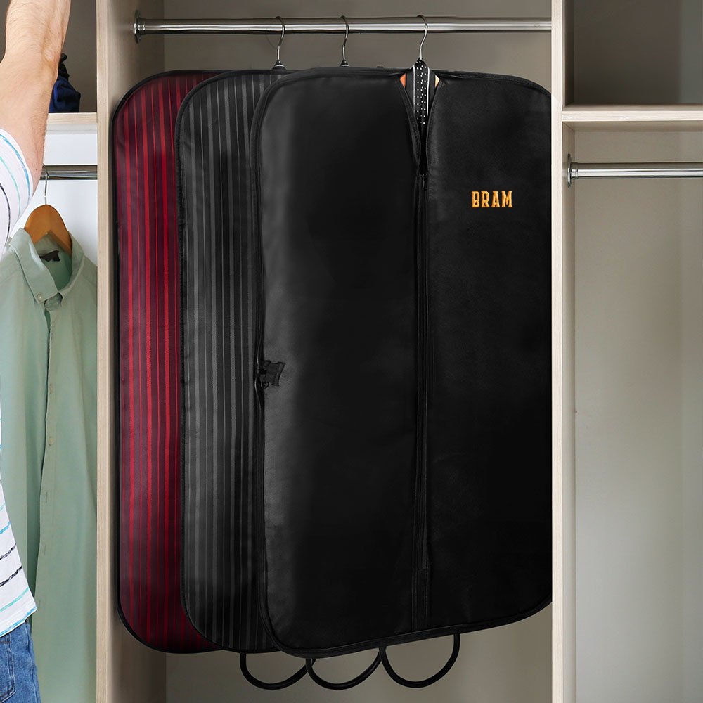 De kledingzak is voorzien van eersteklas lederen handgrepen, die verfijning en duurzaamheid toevoegen aan het klassieke ontwerp. De hoogwaardige constructie en aandacht voor detail zorgen voor een verfijnde uitstraling. Ideaal voor het beschermen van mooie pakken en formele kleding, terwijl de persoonlijke geborduurde naam een gedistingeerde touch toevoegt.