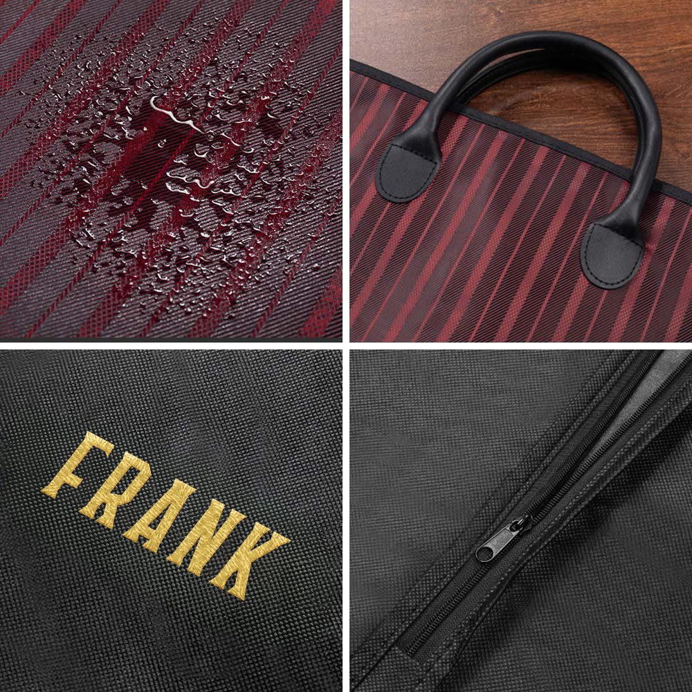 Deze tas is ontworpen voor zowel dagelijks opbergen als voor reizen. Het waterdichte materiaal beschermt pakken tegen stof, vocht en kreukels, zowel thuis als tijdens zakenreizen. Het draagbare ontwerp maakt het perfect om de kwaliteit van kledingstukken te behouden terwijl u onderweg bent.