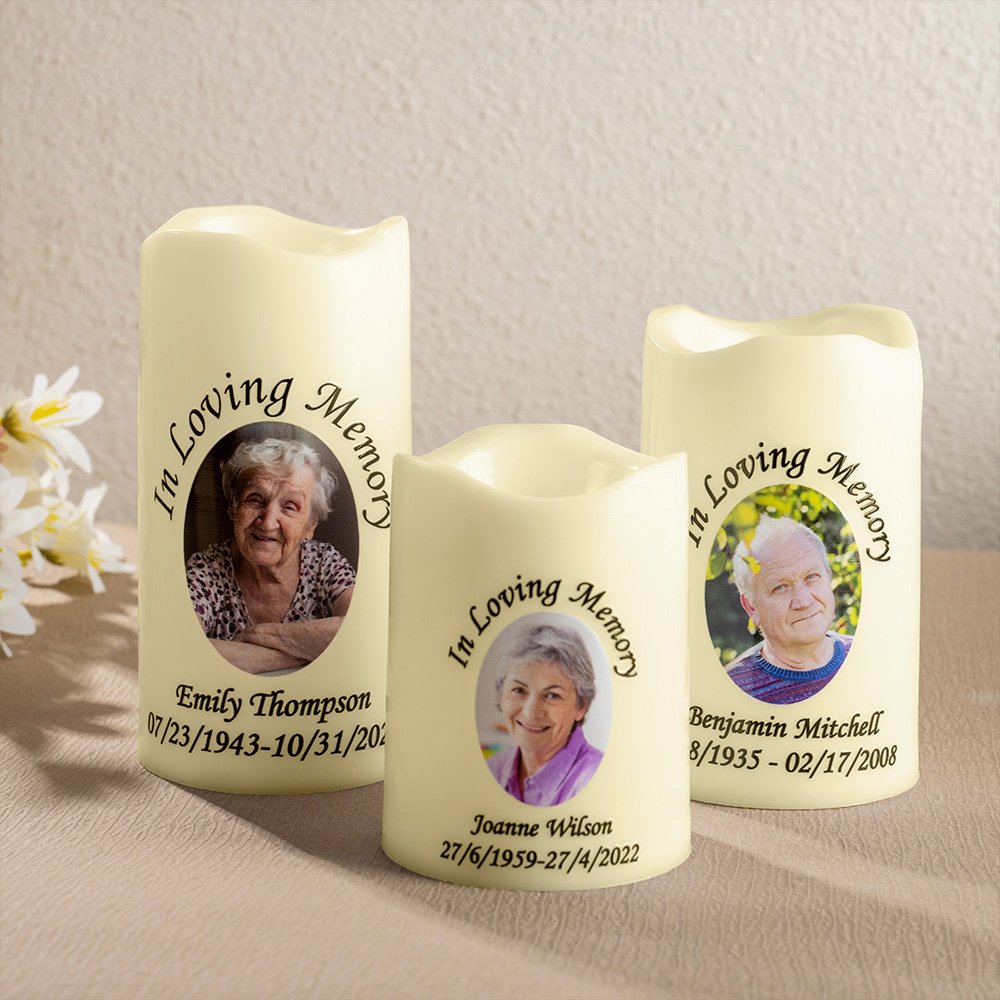 Gepersonaliseerde portretfoto vlamloze LED-kaars met naam en datum Sympathie Herdenkingscadeau voor verlies van geliefde