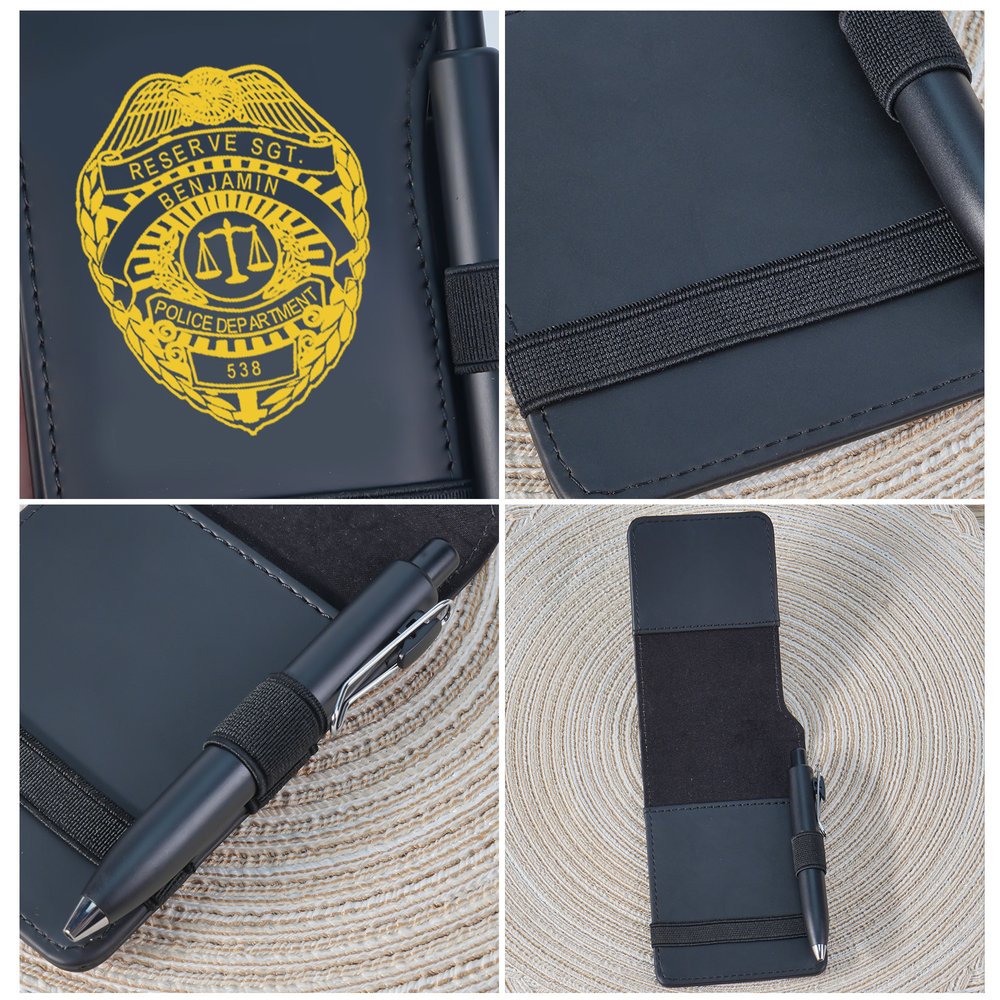 Dit notitieblokje gebruikt de plechtige gouden sheriffster en het embleem van het politieschild als belangrijkste ontwerpelementen, waardoor de heilige missie van wetshandhaving nauwkeurig wordt weergegeven. Je kunt het notitieblok aanpassen met drie teksten en een nummer, zoals de rang van de agent, naam, eenheid en badgenummer, waardoor elk notitieblok een uniek symbool van je identiteit wordt. Het creëert een professionele sfeer vanuit de details, waardoor het dagelijks noteren aanvoelt als een zaak van professionele eer.