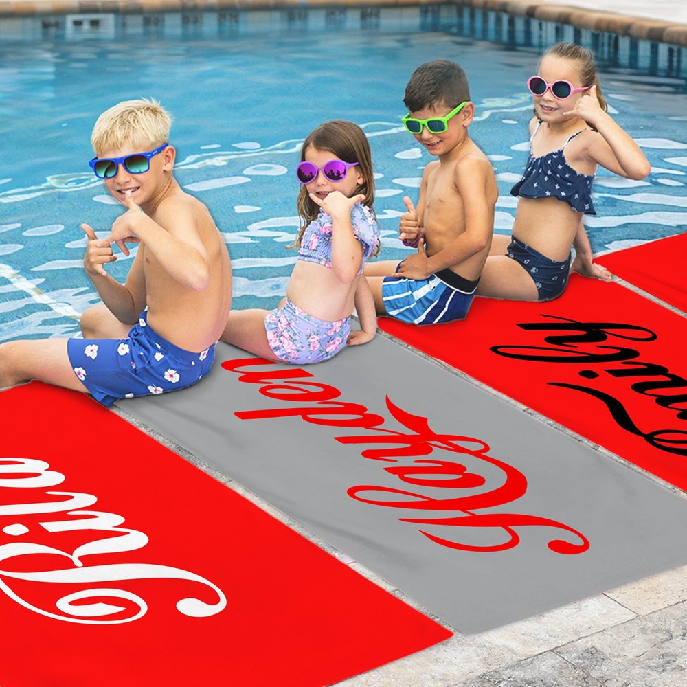 De contrasterende zwart-rode, grijs-rode en rood-witte ontwerpen zijn geïnspireerd op de klassieke Cole-fles en combineren een retrogevoel met een trendy esthetiek. Met de aanpasbare tekst kan elke handdoek een uniek fashion statement worden, perfect passend bij de individualiteit van jonge merkminnende individuen.