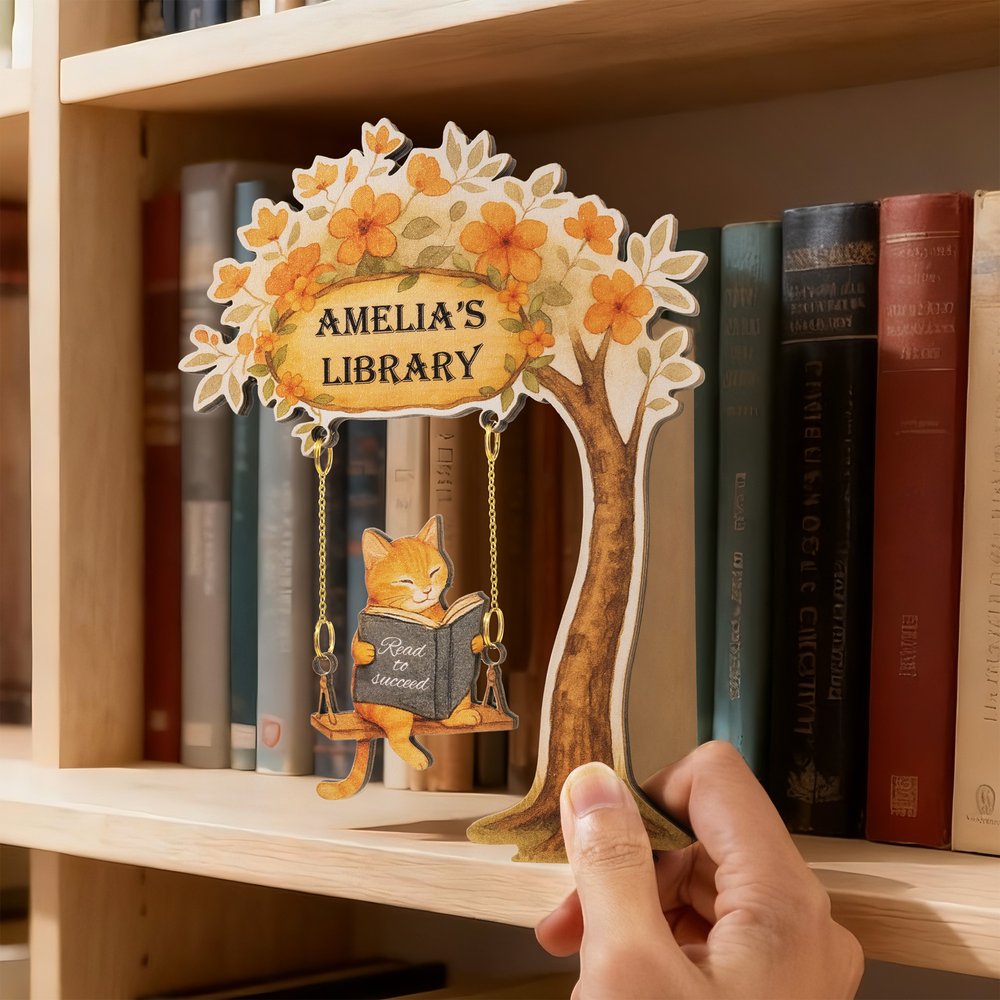 Deze leeshoek- en telset is geïnspireerd op de charmante afbeelding van een kat die op een schommel schommelt en combineert op ingenieuze wijze een boekenplankmarkering met een leesvoortgangmeter. Aanpassing wordt ondersteund, zodat je het kunt personaliseren met een naam en tekst, waardoor een echt uniek ornament ontstaat.