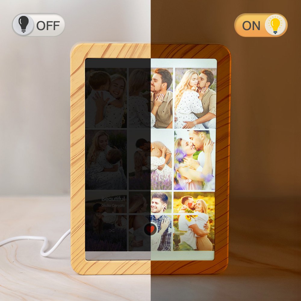 Deze fotolijst valt op door zijn unieke houttint. Het combineert geometrische vormen perfect met een moderne minimalistische stijl, die modieus en artistiek is. Je kunt niet alleen kiezen uit 8 stijlen, maar je kunt ook de naam en tekst aanpassen en foto's uploaden volgens jouw voorkeuren. Of het nu een familiefoto, een foto van een stel of een herdenkingsfoto is, je kunt hem perfect weergeven met dit fotolijstje.
