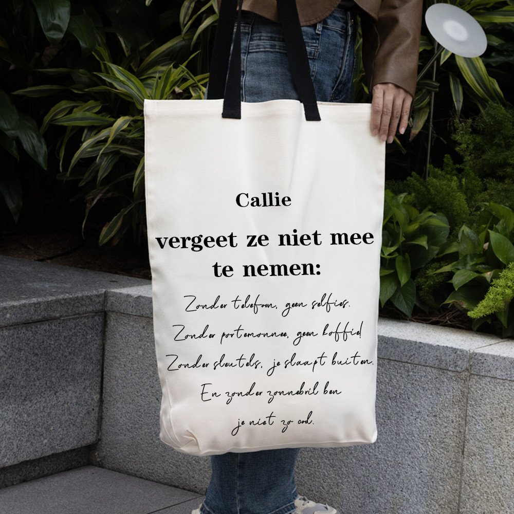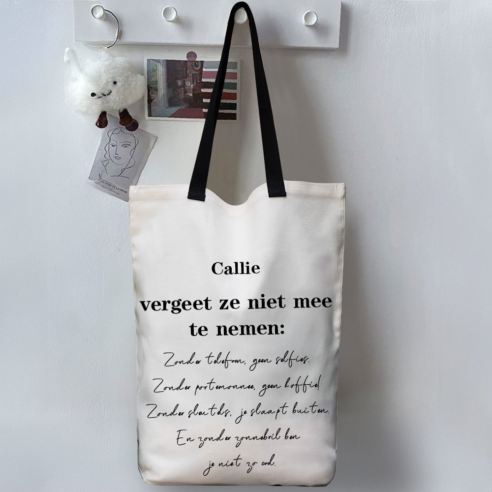 Gepersonaliseerde Vergeet Ze Niet Mee Te Nemen Herbruikbare Grote Canvas Boodschappentas Met Hengsels en Naam Verjaardagscadeau Voor Vrouwen