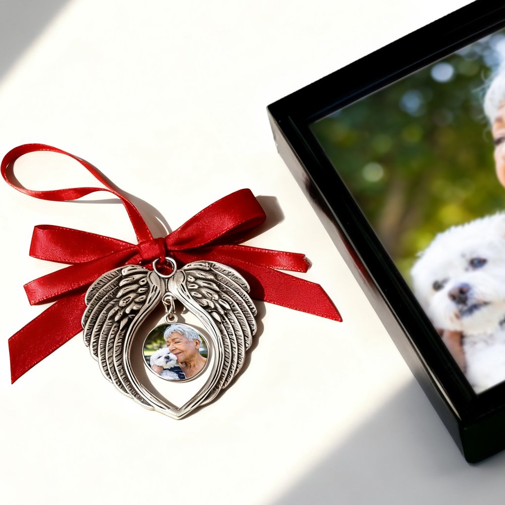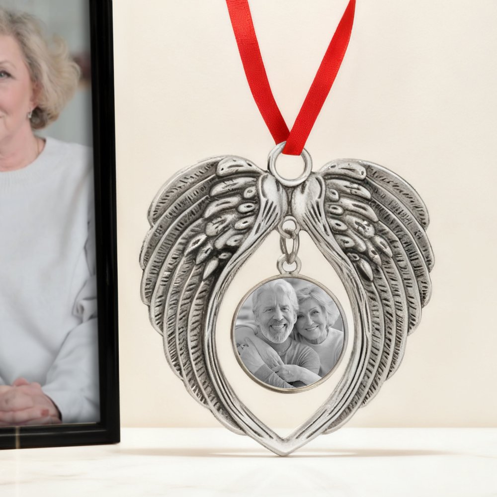 Dit ornament is ontworpen om oprechte en diepe gevoelens over te brengen. De engelenvleugels symboliseren bescherming en voogdij, en staan voor liefde en zorg voor de persoon op de foto. De hartvorm belichaamt diepe genegenheid en met het aangepaste foto-ontwerp kun je dierbare herinneringen en liefde toevoegen, waardoor het een eeuwig aandenken wordt.