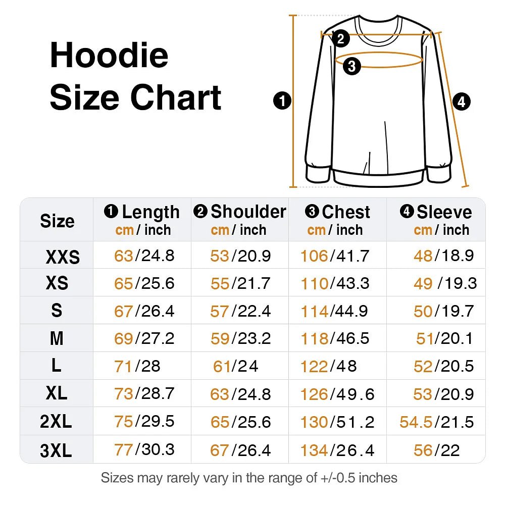 | Afmeting: | T-shirt - XXS, XS, S, M, L, XL, 2XL, 3XL, 4XL, 5XL Sweater - XXS, XS, S, M, L, XL, 2XL, 3XL |