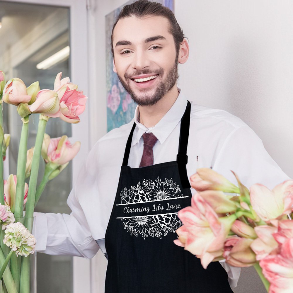 Dit schort valt op door zijn unieke ontwerp. Het schort is versierd met prachtige bloemmotieven en elke bloem toont natuurlijke schoonheid en artistieke charme, vol vitaliteit en kracht. Er zijn 9 schortkleuren en tot 31 bloemmotieven, en je kunt vrij combineren en kiezen wat je het meest bevalt. Bovendien ondersteunt het schort persoonlijke aanpassingen en kun je je naam of speciale tekst afdrukken om je exclusieve persoonlijke stijl te laten zien.