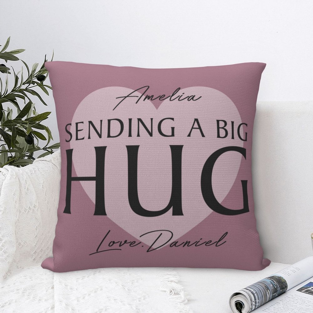 Onze kussenhoes is versierd met de hartverwarmende boodschap "Sending a big hug. Deze attente slogan straalt liefde, warmte en genegenheid uit, waardoor het een perfect cadeau is voor Valentijnsdag of een andere speciale gelegenheid.