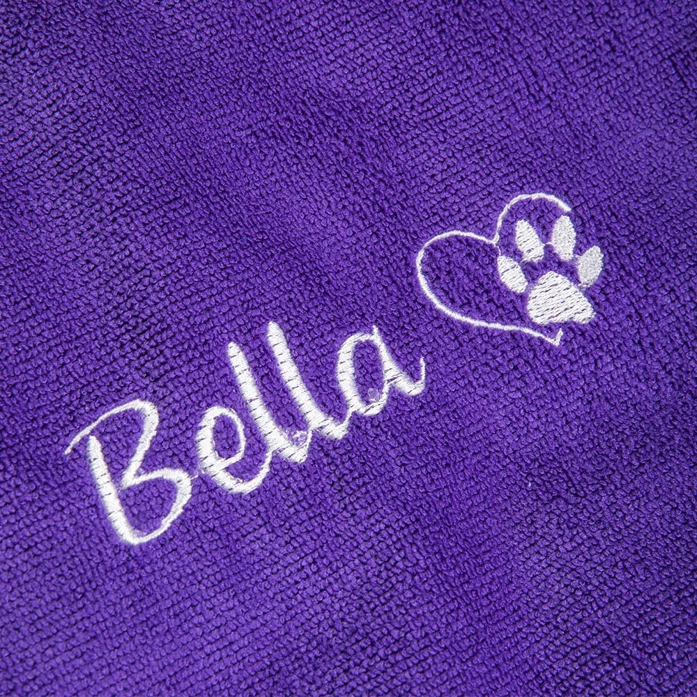 Er zijn verschillende ontwerpopties beschikbaar. Je kunt deze badhanddoek voor honden personaliseren met de naam van je huisdier, waardoor hij echt uniek wordt. U kunt het kopen voor uw eigen huisdier of als een attent cadeau voor hondenbezitters en dierenliefhebbers.