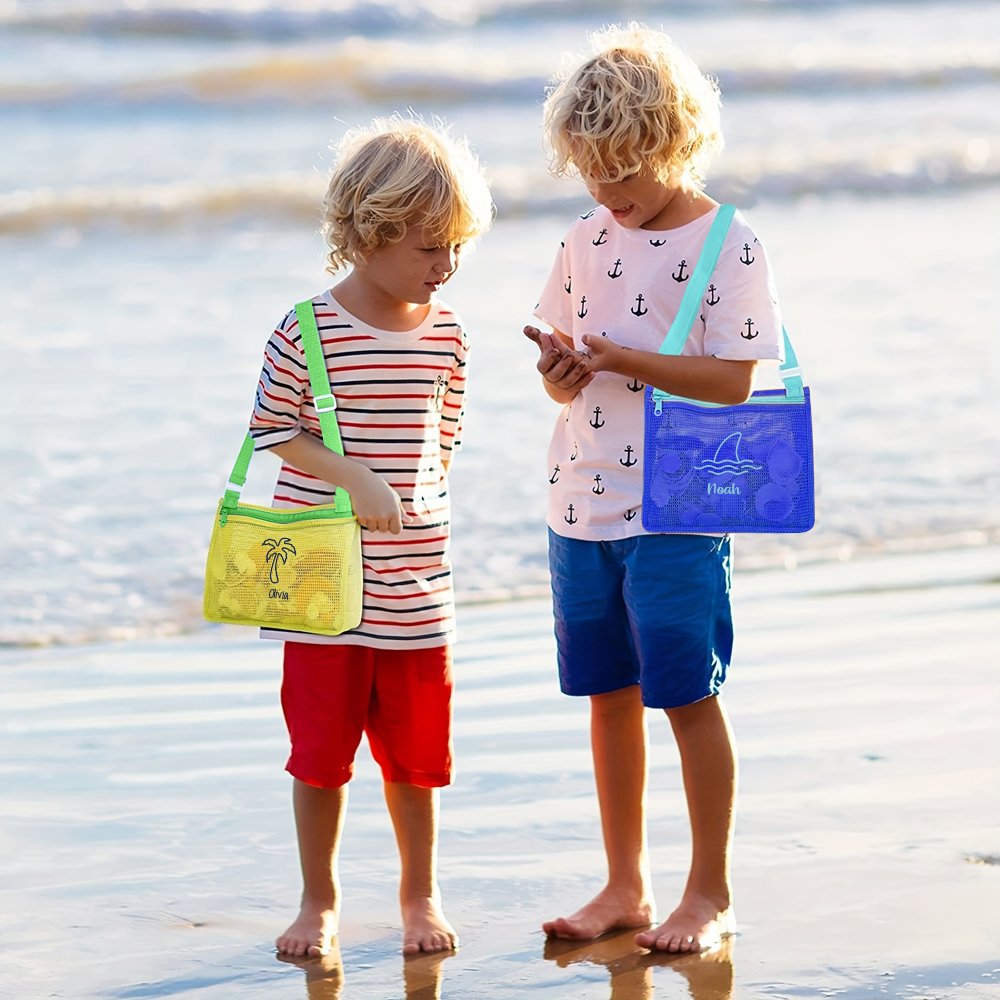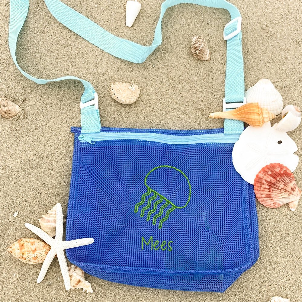 Deze strandtas van gaas is ontworpen met 16 geborduurde patronen, zoals krabben, dolfijnen, ijsjes, enz. U kunt niet alleen kiezen uit 6 kleuren strandtassen, maar u kunt ook uw naam vrij aanpassen, zodat elke tas een uniek symbool van persoonlijkheid wordt.