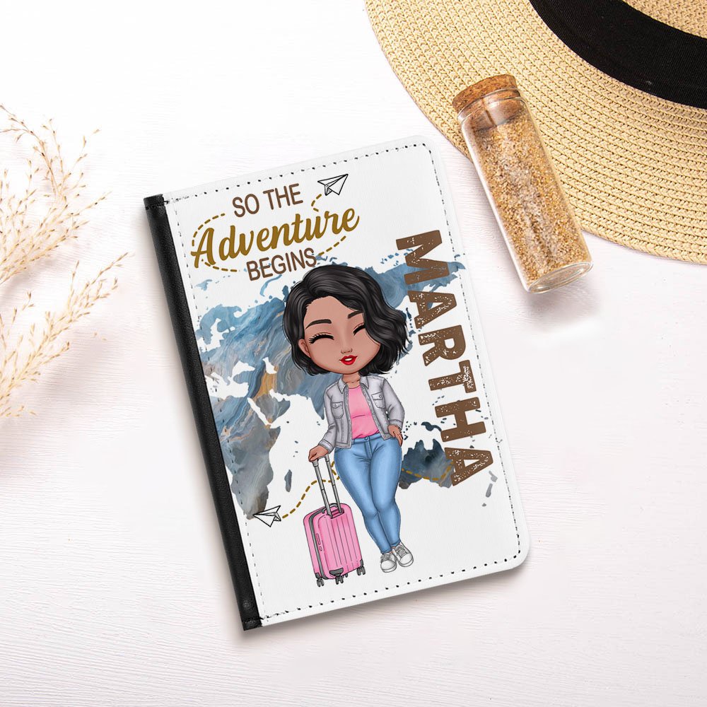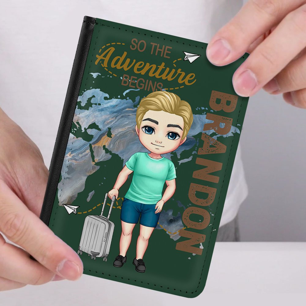 Deze zin "SO THE Adventure BEGINS " is afgedrukt op onze paspoorthoes en bevat je opwinding en anticipatie op de nieuwe reis. Dus ben je klaar voor je avontuur met onze paspoorthoes?