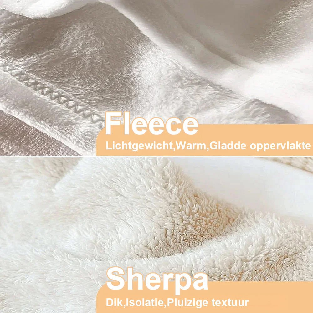 | Afmeting: | Fleecedeken: 75 cm × 100 cm, 100 cm × 125 cm, 100 cm × 150 cm, 125 cm × 150 cm, 150 cm × 200 cm; Sherpa deken: 100 cm × 125 cm, 125 cm × 150 cm, 150 cm × 200 cm |
