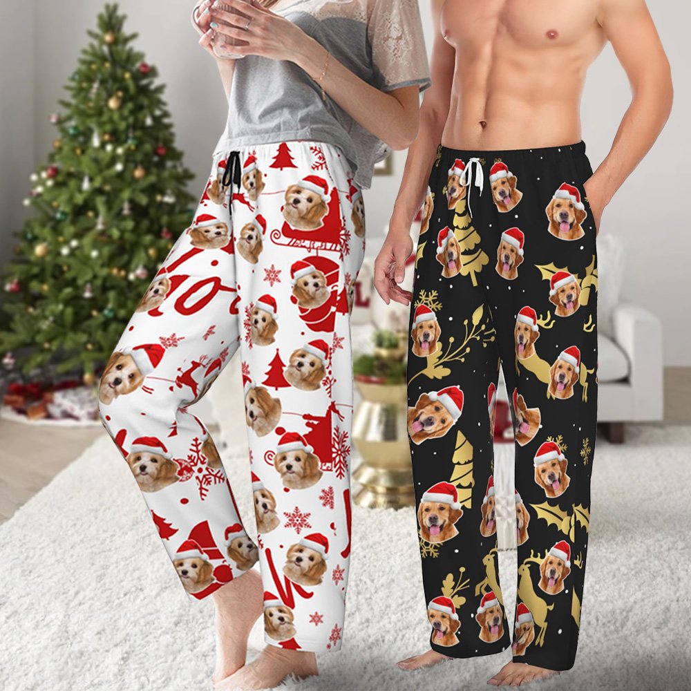 Deze pyjamaset is ontworpen met kerstelementen. Je kunt een eigen foto van je huisdier uploaden en combineren met een kerstmuts om je huisdier deel te laten nemen aan de kerstsfeer, die verder gaat dan gewone pyjamasets. Deze pyjamabroek is gemaakt van hoogwaardige, zachte en ademende stof voor maximaal comfort tijdens een gezellige nacht. Dankzij het lichtgewicht materiaal kun je rustig slapen.
