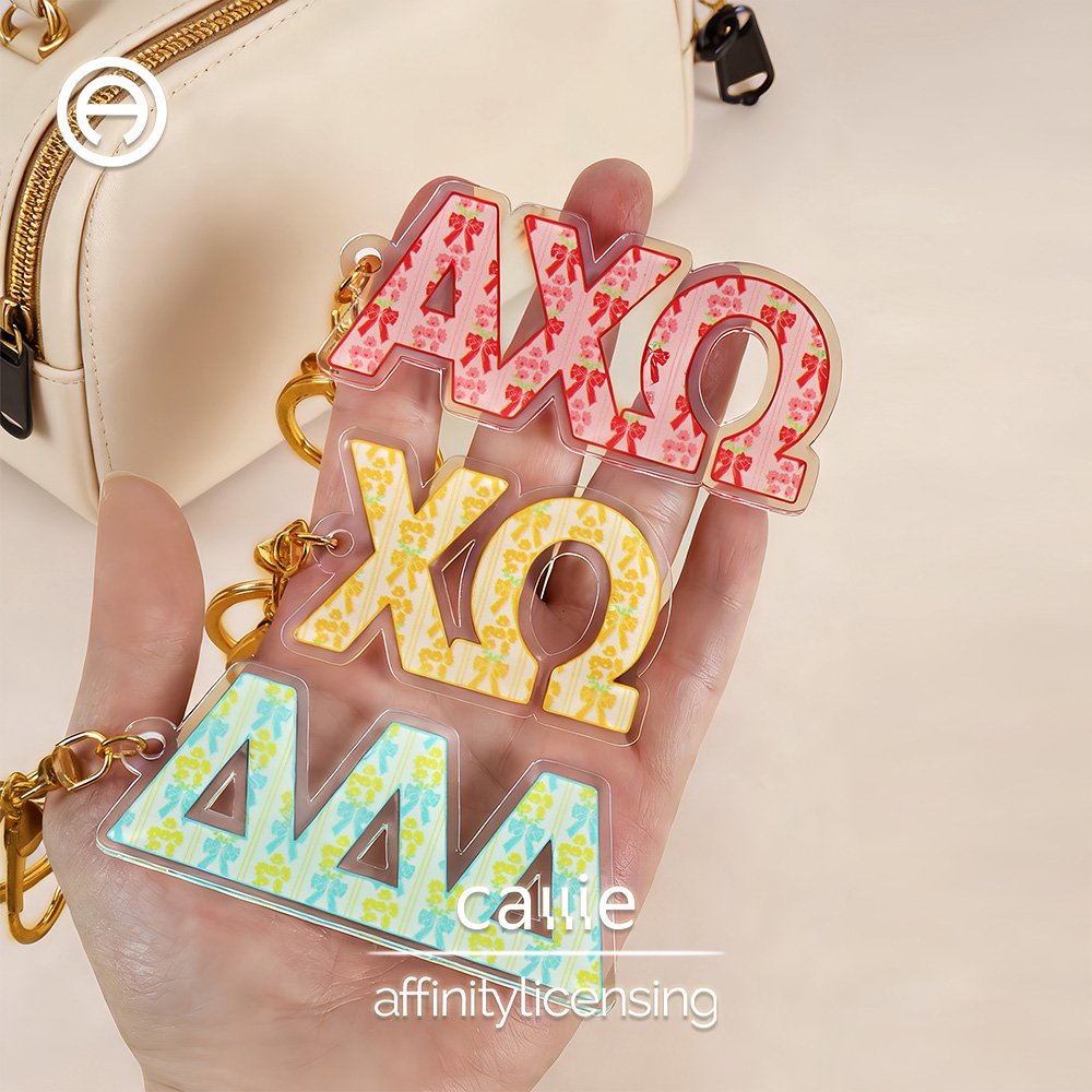 Deze acryl sleutelhangers zijn ontworpen met een studententhema, met delicate bloemen- en strikpatronen en opvallende letterontwerpen. Ze kunnen worden aangepast met Griekse letters, waardoor ze een uniek en persoonlijk tintje krijgen.