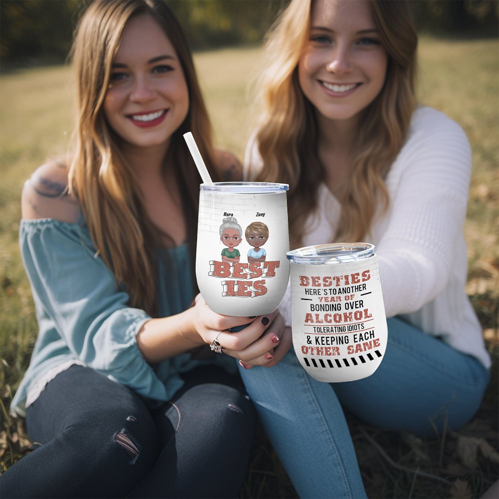 Gepersonaliseerde Soul Sisters Another Year of Bonding Over Alcohol 12oz Wine Tumbler met rietje Verjaardag Bruidsfeest Cadeau voor je Bestie