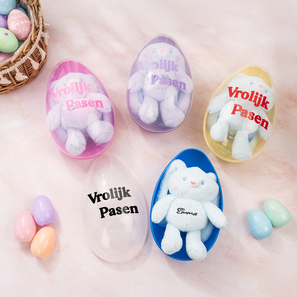 Deze gepersonaliseerde set is een persoonlijk en leuk paascadeau voor iedereen. Je kunt het paasei vullen met snacks of kleine verrassingen. Zo wordt het een ideaal cadeau voor kinderen of familie, zowel voor Pasen als voor een verjaardag.
