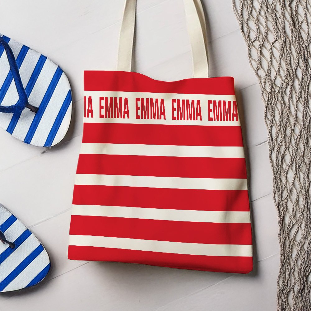 Onze canvas tassen hebben een klassiek streepdesign, modieus en persoonlijk. Er zijn 6 kleuren beschikbaar en je kunt ook exclusieve tekst aanpassen om je tas uniek te maken, je stijl te benadrukken en het meest unieke bestaan in de zomer te worden.