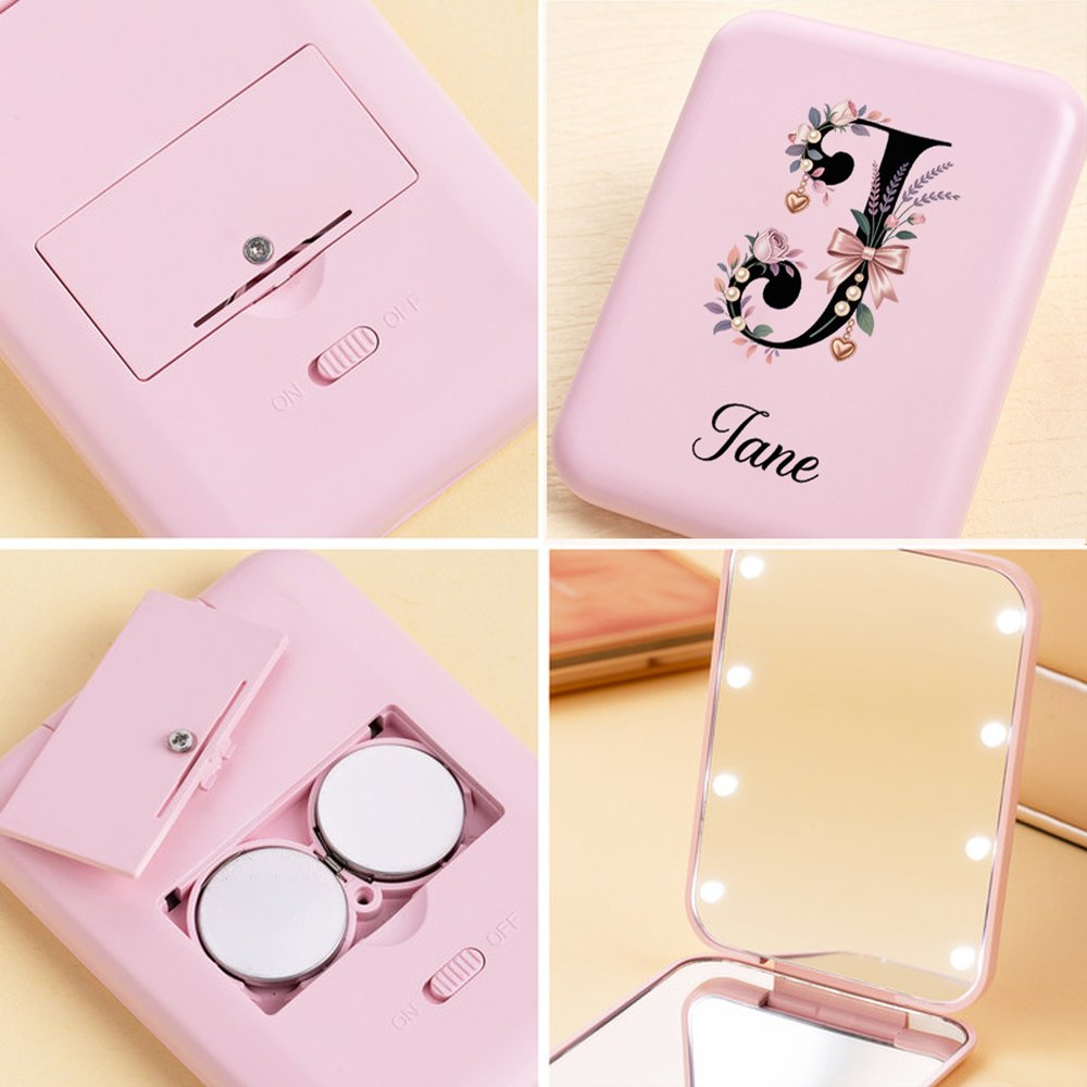 Deze spiegel is geïnspireerd door schoonheidsesthetiek en persoonlijke aandenkens en bevat bloemen- en parelelementen, met opties voor eigen initialen en een volledige naam. Verkrijgbaar in drie stijlvolle kleuren - een beauty accessoire op maat, speciaal voor jou gemaakt.