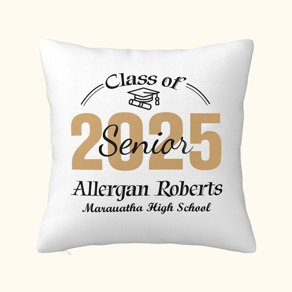 Op zoek naar een cadeau voor afgestudeerden van de middelbare school? Dit op maat gemaakte kussen is perfect. De gepersonaliseerde en unieke kenmerken zullen de ontvanger ongetwijfeld verrassen. Gebruik ons kussen om ze een warme plek te geven om te rusten tijdens hun reis naar de toekomst!