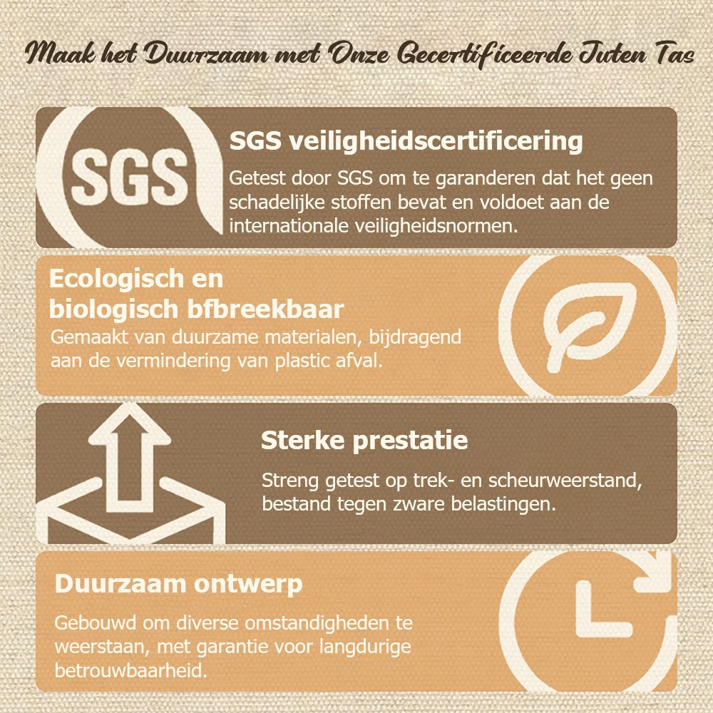 Gemaakt van ademend en slijtvast jute, is deze lichte tas perfect voor elke dag. Of je nu boodschappen doet of op reis gaat, hij is praktisch én vriendelijk voor het milieu – een bewuste keuze voor een duurzame toekomst.