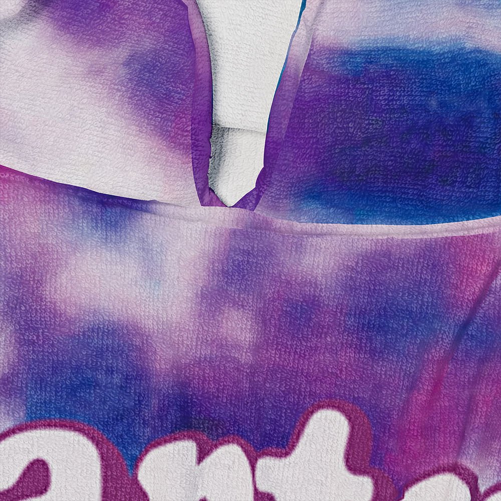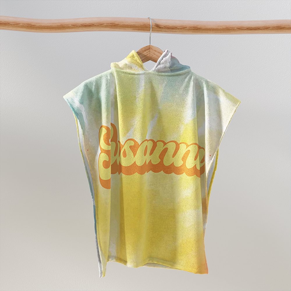 Dit strandlaken met capuchon heeft een prachtig tie-dye motief dat barst van de levendige kleuren. De dynamische wervelingen en kleurverlopen creëren een visueel boeiend en speels ontwerp dat onmiddellijk de stemming verbetert en zomerse vreugde brengt aan elk strand- of zwembadavontuur.