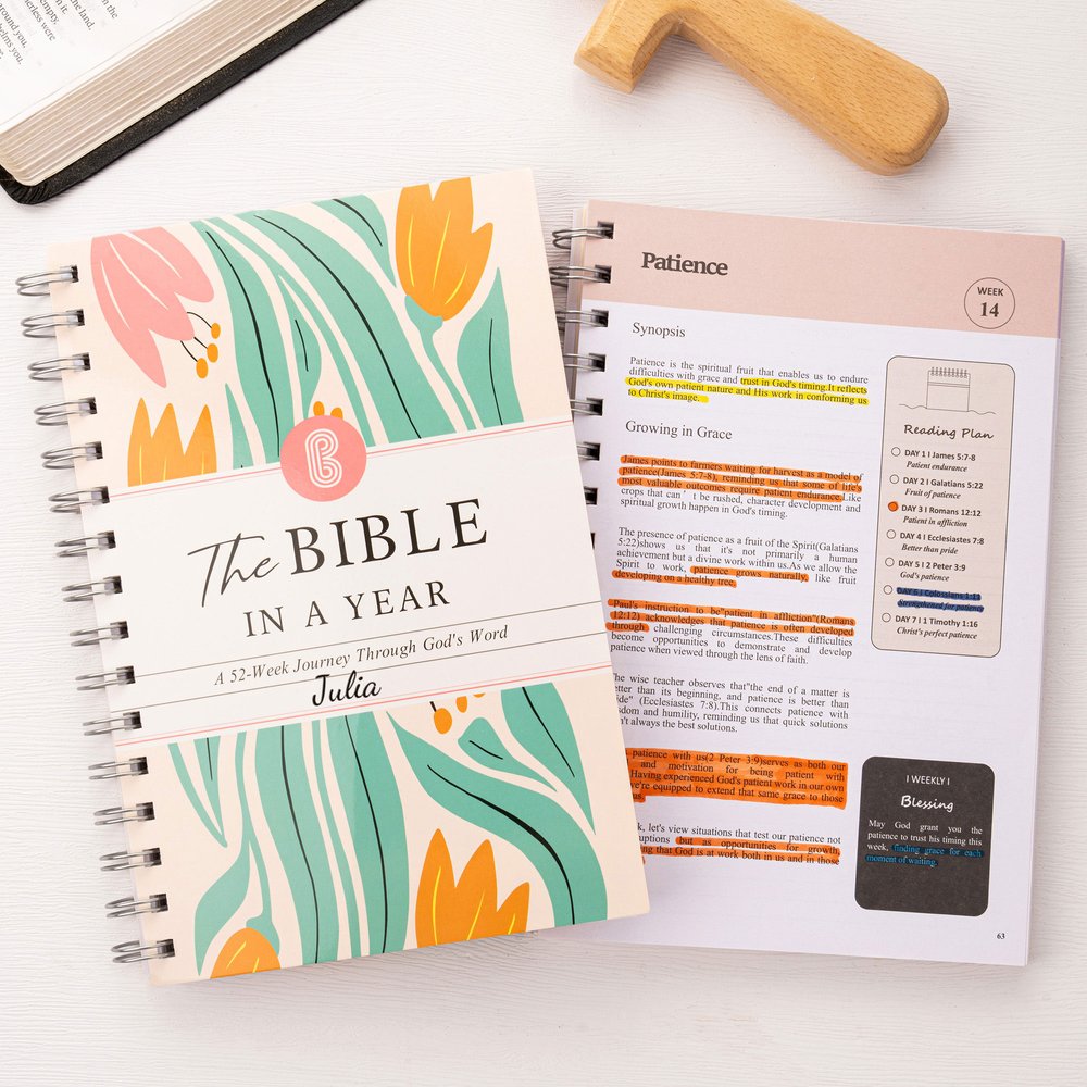 Deze bijbelstudiegids biedt een 52 weken durende thematische studie, waarbij elke week in het teken staat van een betekenisvol thema – zoals vertrouwen, genezing, identiteit en doelgerichtheid – gekoppeld aan geselecteerde Schriftteksten, devotionele inhoud, reflectievragen en een afsluitende zegen. Deze gids is gericht en doordacht georganiseerd, en geschreven in duidelijke en begrijpelijke taal. Je kunt een naam op de omslag laten zetten, waardoor de dagelijkse devotie een rituele en esthetische ervaring wordt.