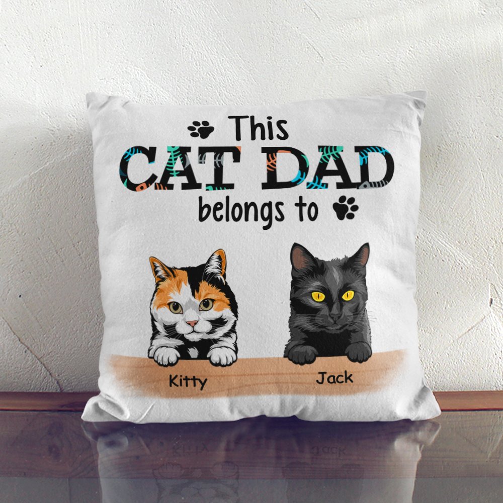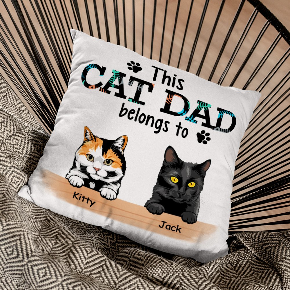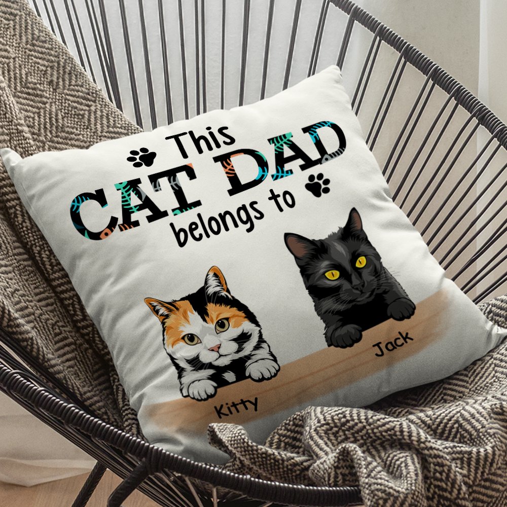 "This Cat Dad Belongs to" kussenhoes gemaakt van zacht en duurzaam polyester, deze hoes heeft een speels ontwerp dat de liefde voor kattenvrienden laat zien.