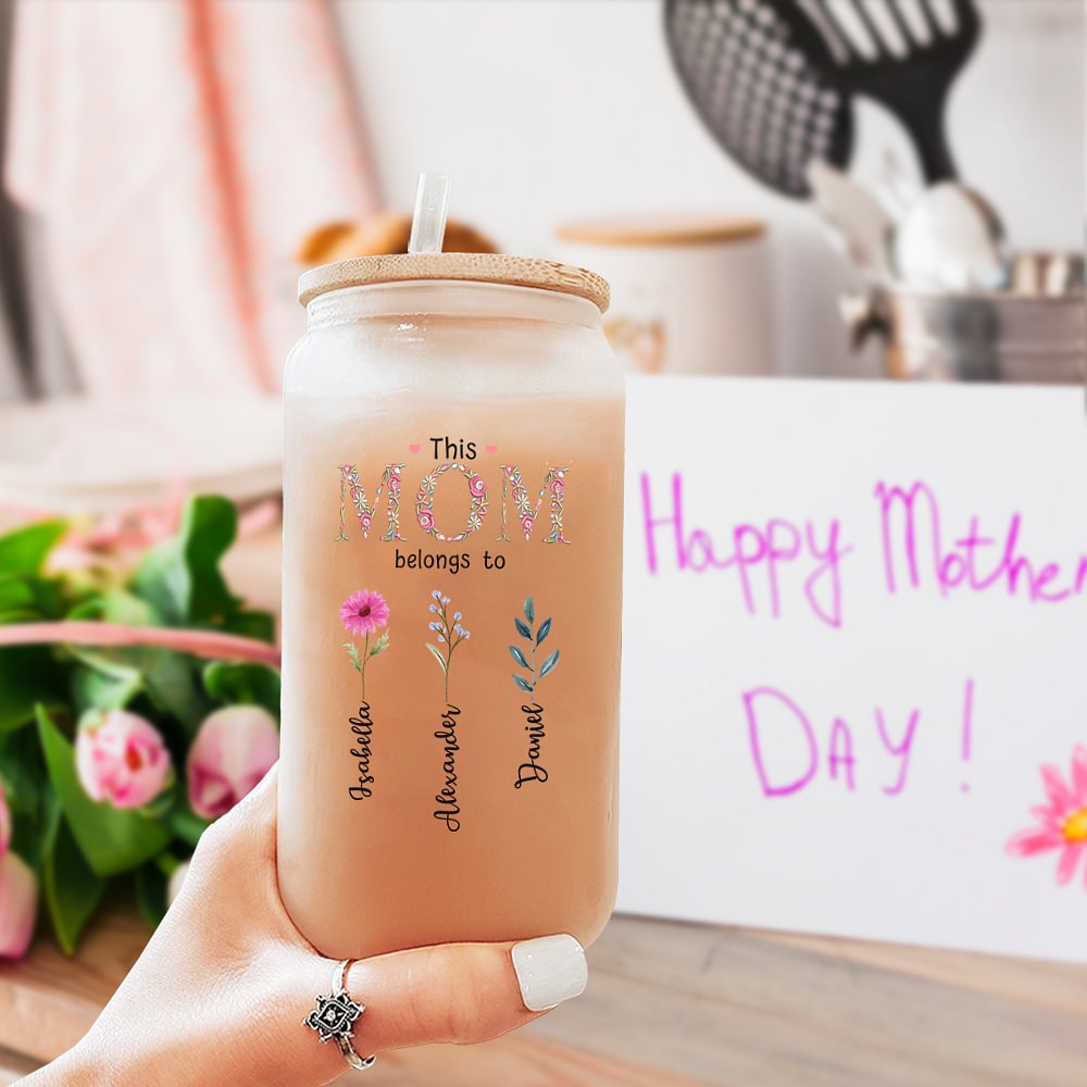 Elke gepersonaliseerde glazen beker is een unieke creatie, met de vertederende quote "This Grandma/Mom Belongs To," gevolgd door de namen van familieleden en hun bijbehorende geboortebloemen. Deze personalisatie is niet alleen een ontwerp, maar een symbool van ieders unieke kwaliteiten en betekenis, waardoor een betekenisvol en symbolisch tintje ontstaat. Het is een hartverwarmende herinnering aan de liefde en vreugde binnen de familie.