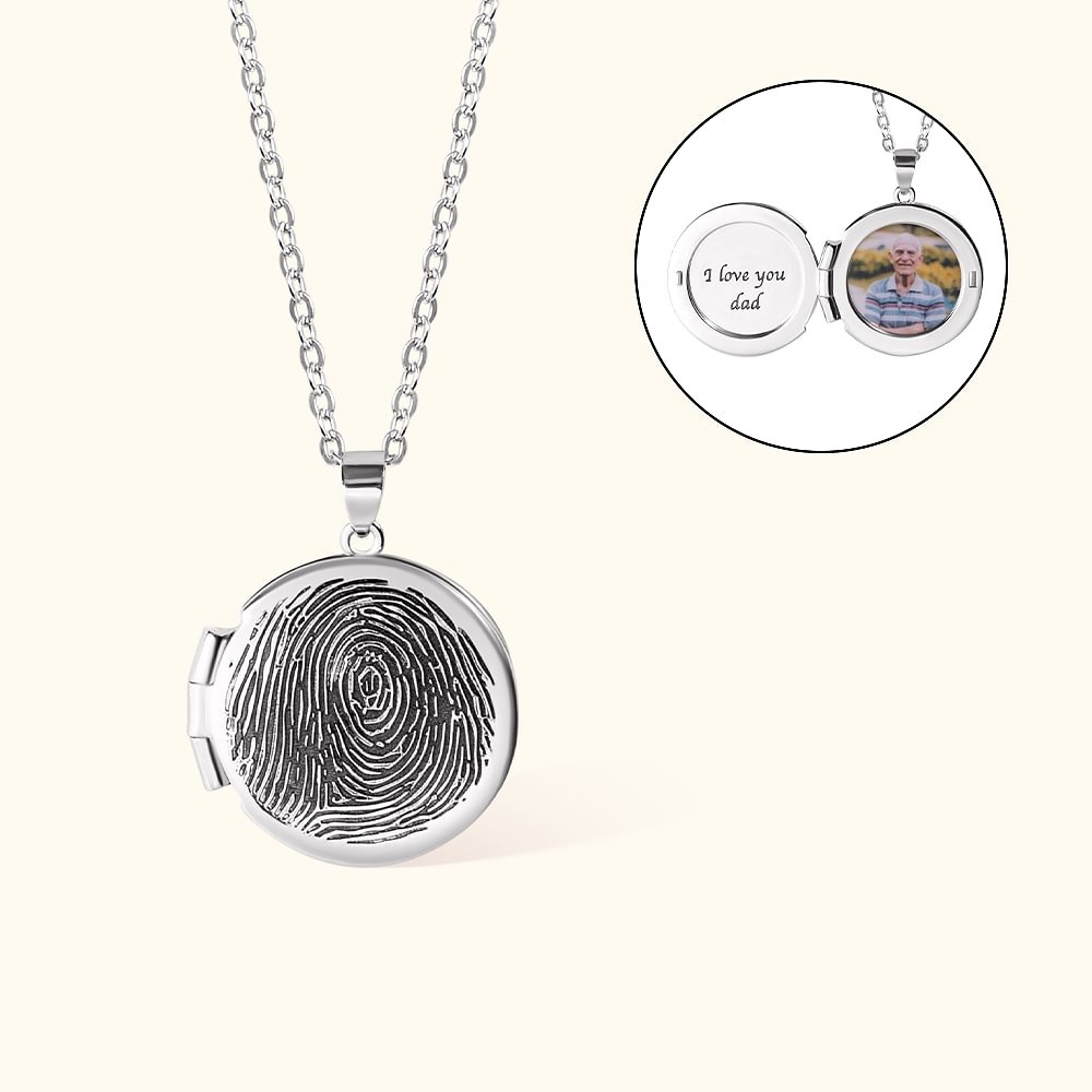 Gepersonaliseerde kleine ronde vingerafdruk fotolocket ketting met tekst Herdenkingscadeau voor verlies van geliefde