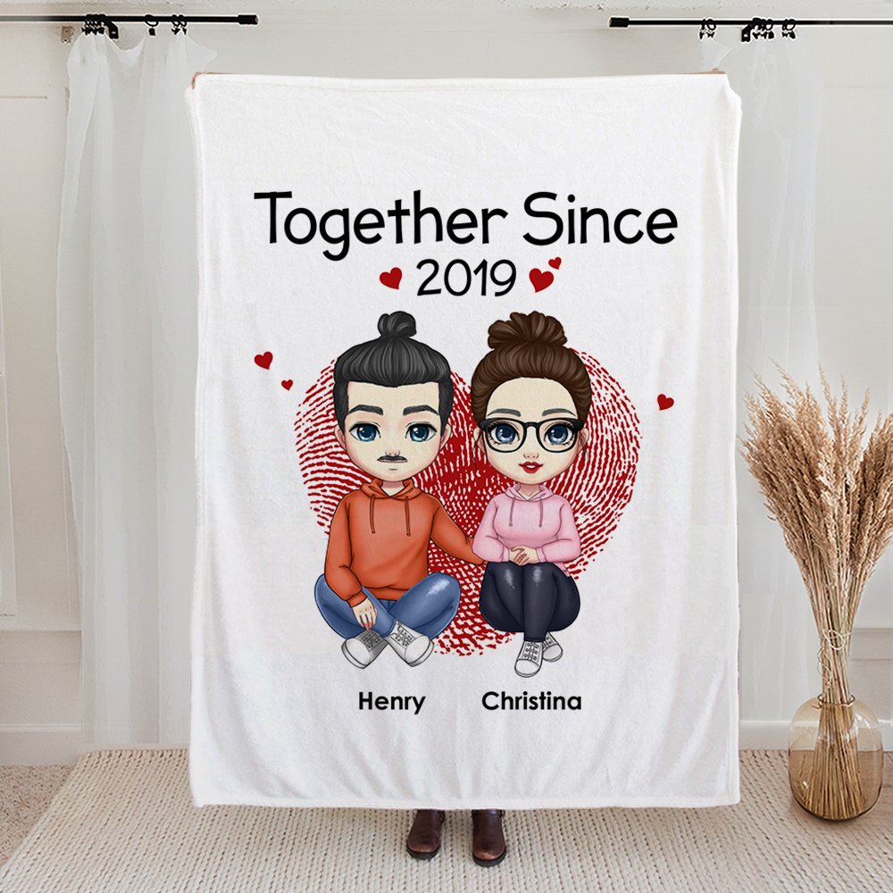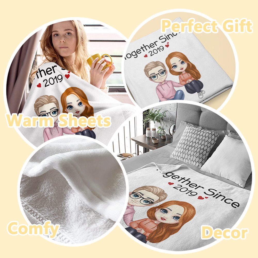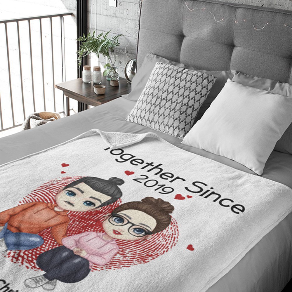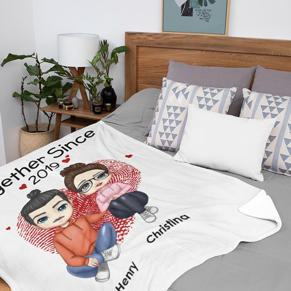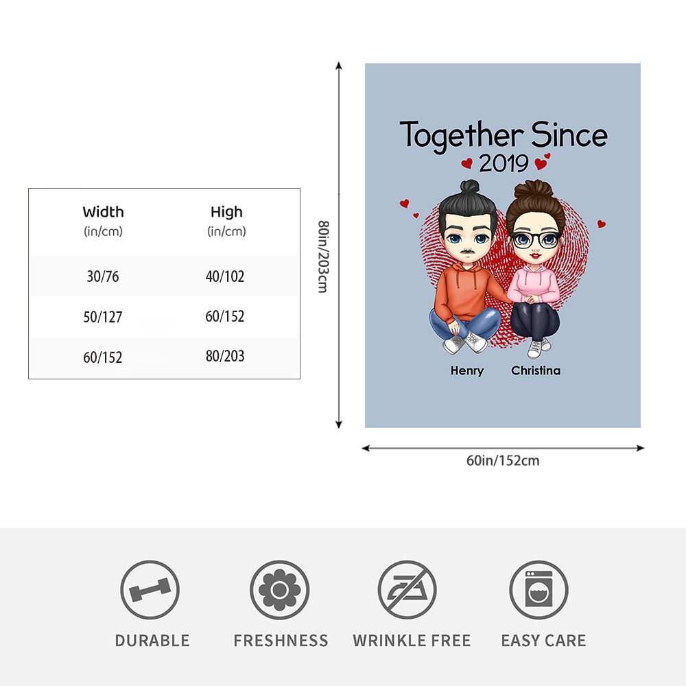 Met het ontwerp "Together Since 2019" kun je het aanpassen met het gedenkwaardige jaar waarin zij hun reis als koppel begonnen. Deze attentie voegt sentimentele waarde toe aan het cadeau, waardoor het echt uniek is. Elke keer dat ze zich in deze deken wikkelen, worden ze herinnerd aan de dag waarop hun liefdesverhaal begon.