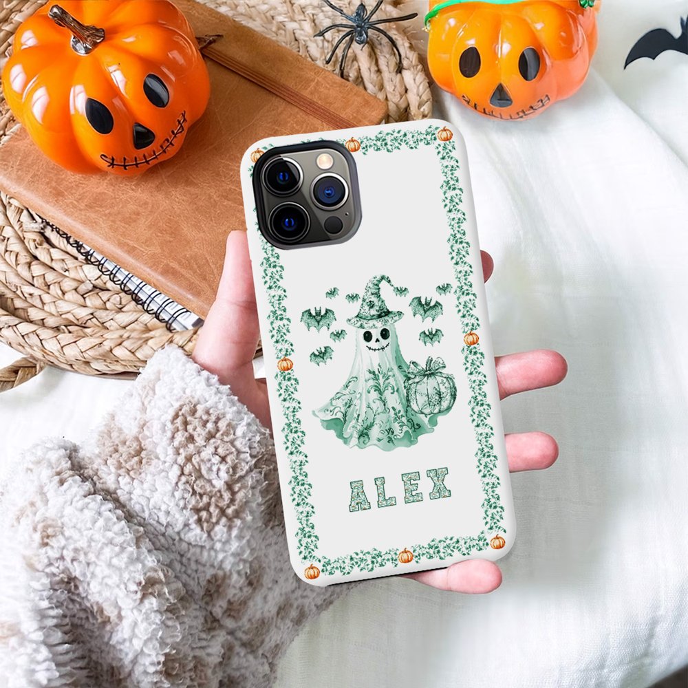 Dit telefoonhoesje combineert de Toile De Jouy-stijl perfect met Halloween-elementen. Je kunt het uiterlijk van het spook aanpassen, kiezen uit pompoen-, vleermuis- en hoedstijlen en een naam toevoegen, zodat je een uniek Halloween-etui creëert.
