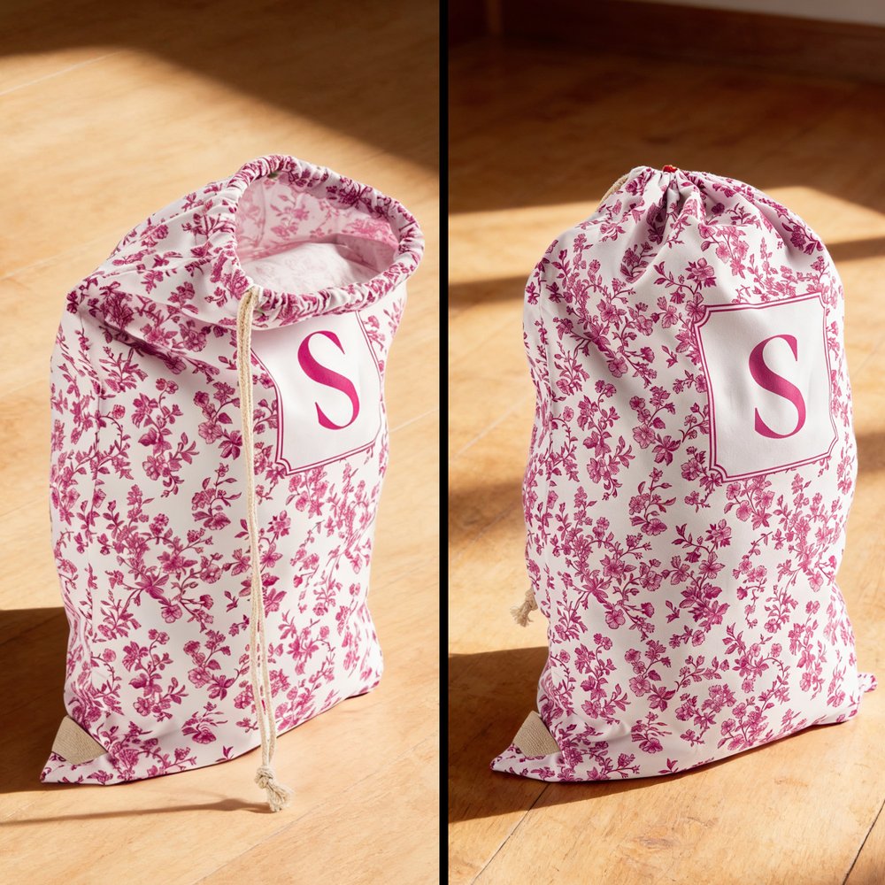 Gepersonaliseerde Toile De Jouy stijl grote capaciteit koord waszak met initiaal Dorm dagelijks gebruik back-to-School Gift voor hogescholen studenten