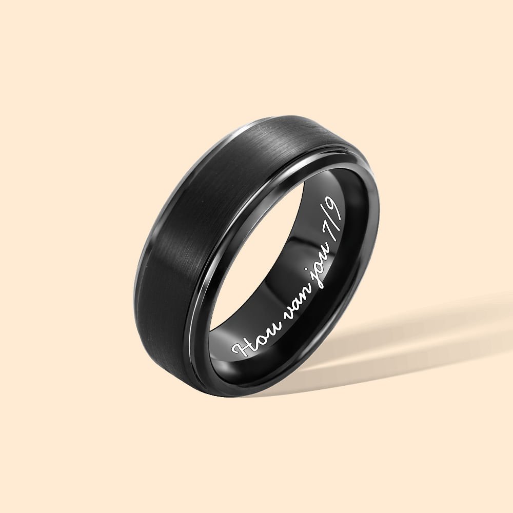 Gepersonaliseerde Zwarte Tungstenen Ring met Inwendige Gravure Tekst Vaderdag Jubileum Valentijnsdag Cadeau voor Mannen