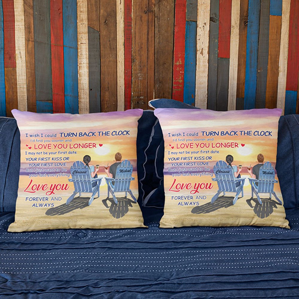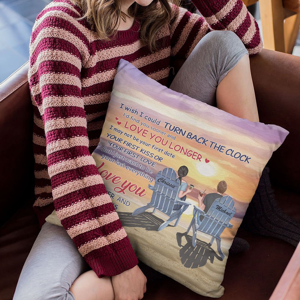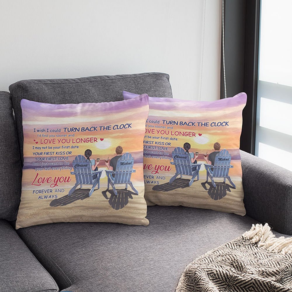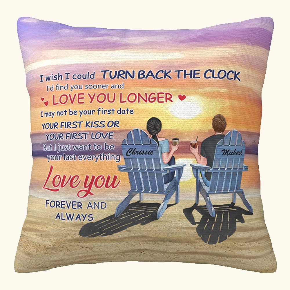 Gepersonaliseerd Turn Back The Clock Love You Longer Strand Zonsondergang Werpkussenhoes Herdenkingscadeau Slaapkamer Decor