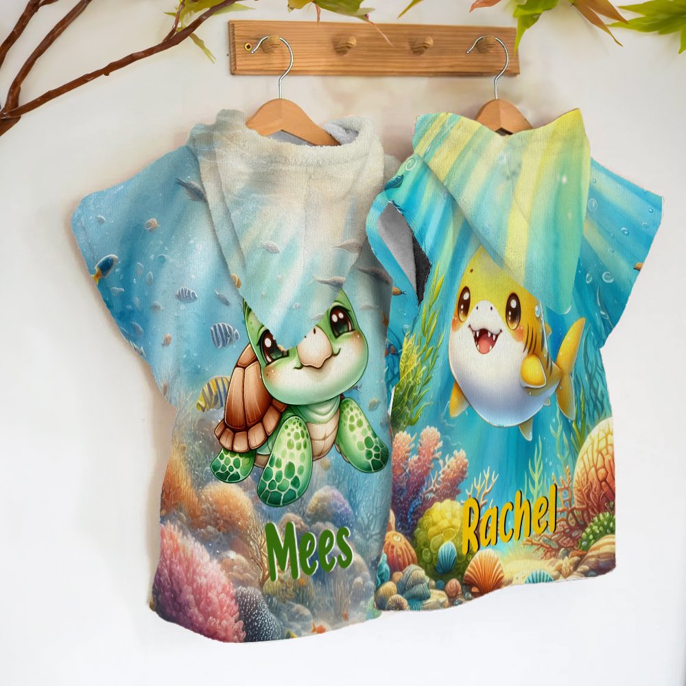 Verkrijgbaar in drie maten, geschikt voor kinderen van verschillende leeftijden. Het poncho-ontwerp zorgt ervoor dat kinderen hun handen vrij hebben. Het kan worden gebruikt als strandhanddoek om zich af te drogen, als lichte poncho tegen de zon of als comfortabele omslagdoek na het zwemmen. Of het nu gaat om een strandvakantie, een dagje in het waterpark of zwemlessen, dit strandlaken is de ideale metgezel voor zomers waterplezier.