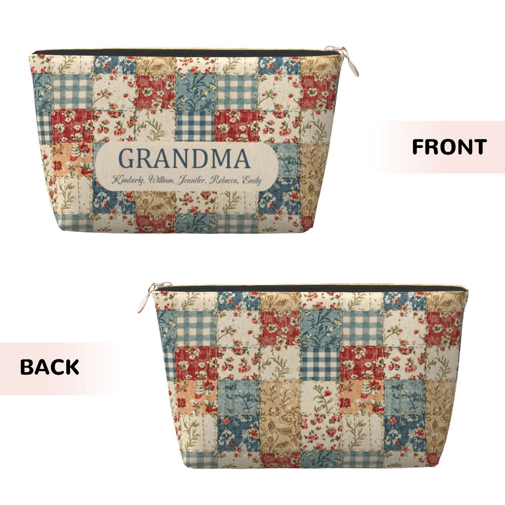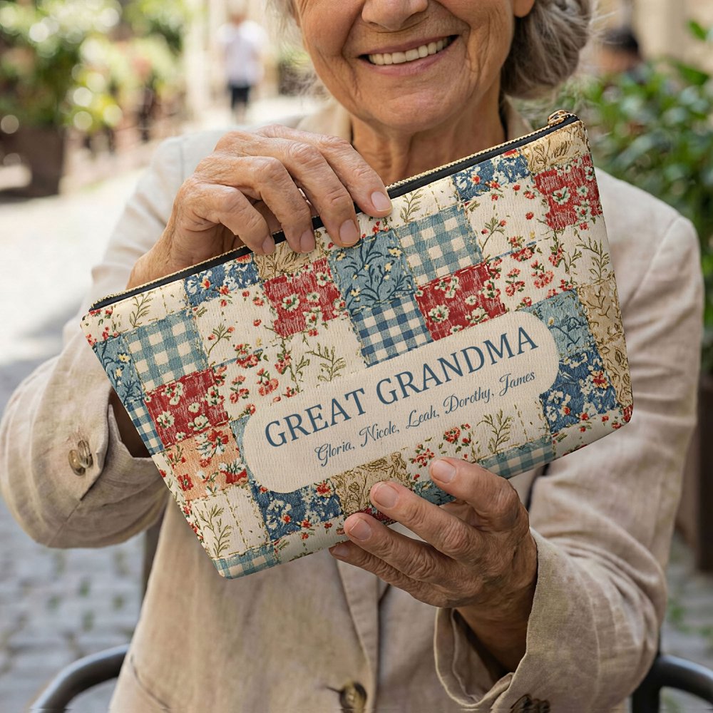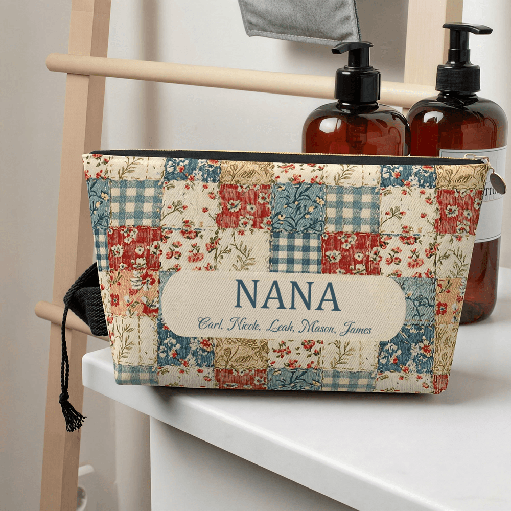 Met een combinatie van vintage bloemenprints en klassieke ruitpatronen straalt deze tas een zachte en elegante stijl uit, die retro charme combineert met huiselijke esthetiek. De tas kan worden aangepast met namen van oudere familieleden, wat een vleugje elegantie en familiewarmte toevoegt.
